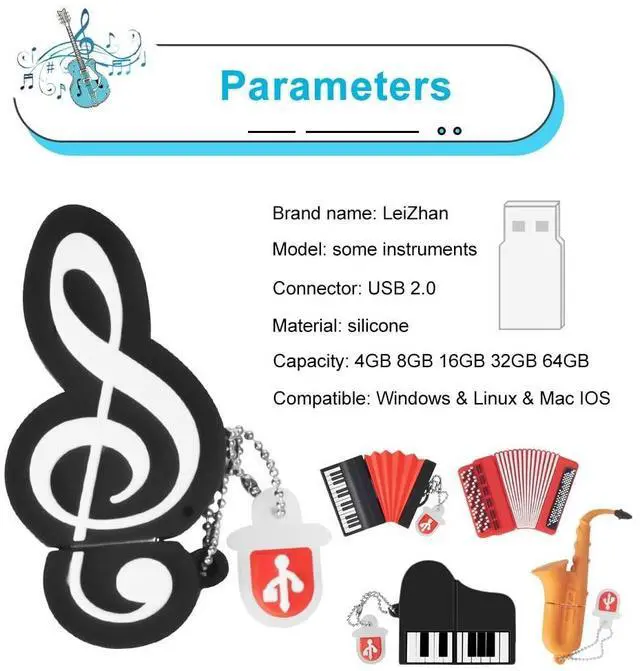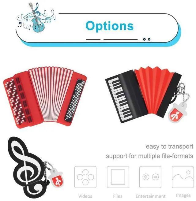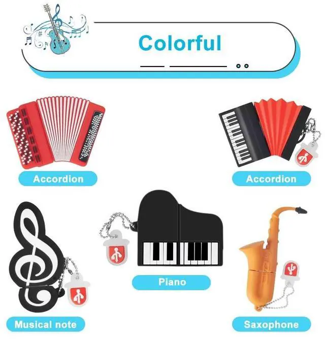 Cute USB Drive: pack of 5 pieces novelty 8GB musical instruments flash drive, featuring strong and soft silicone protective cap, shockproof and stylish ^^