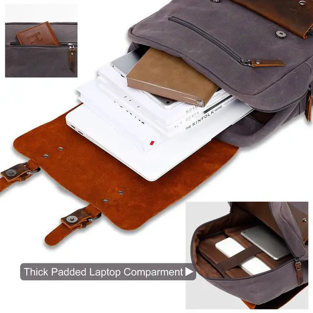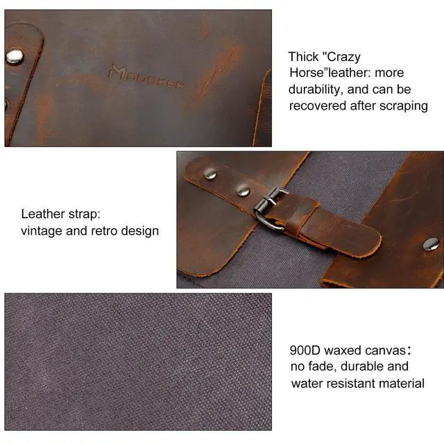 ^^ WAXED CANVAS: The canvas of our vintage laptop backpack is a cotton canvas that has been impregnated with wax, it is a high quality, water repellent and wear-resistant fabric. And the slightly waxy feel gives it a worn, mottled look with use, making it more vintage-chic with age.