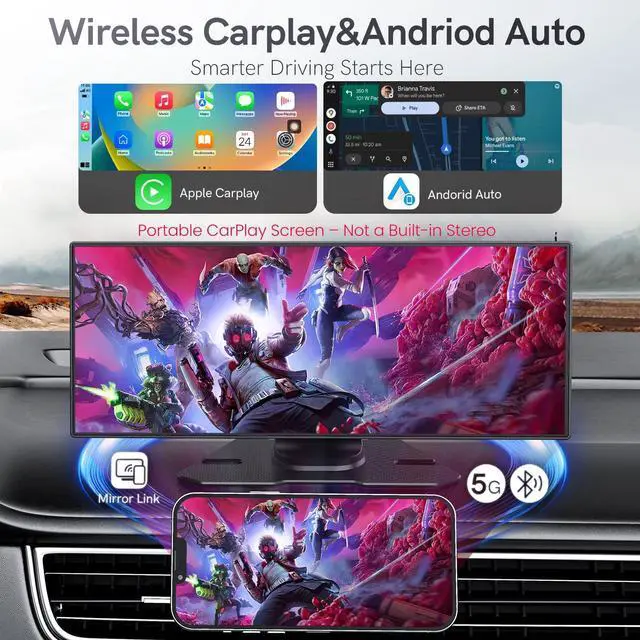 Upgraded 11.26" Incell HD Touch Screen Experience superior display quality with our advanced 11.26 -inch Incell screen. Compared to traditional Oncell screens, Incell technology delivers faster touch response, higher clarity, and better sunlight visibility. Enjoy a seamless and immersive CarPlay and Android Auto experience with vibrant 1920720 resolution, wide viewing angles, and ultra-smooth touch feedback. ^^ Stable Power SupplyUse the included high-quality car charger for steady power and consistent currentpreventing drops, boosting stability, and keeping your COOCOM Carplay running smoothly. Universal fit, no complex wiring needed. ^^ Wireless CarPlay & Android Auto Enjoy seamless plug-and-play wireless Apple CarPlay and Android Autoinstantly connecting you to advanced in-car tech.