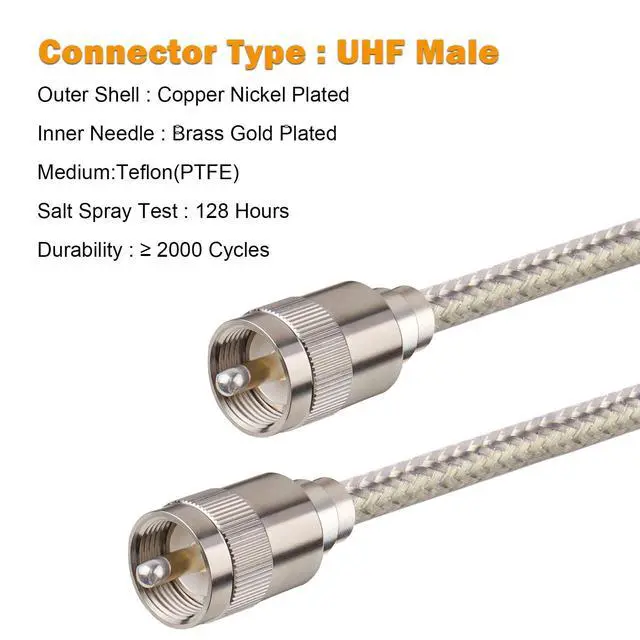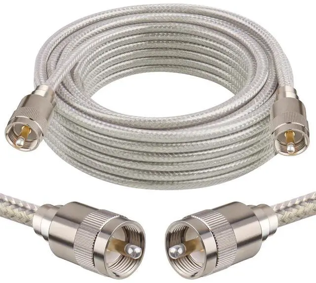 ^^ Great Flexibility -- Stranded center conductor made this ham radio coax cable more flexible than other normal cable. ^^ Strong Link PL-259 Connectors -- High quality pl-259 connectors combined with good welding make the connector not easy to break off from the cable. ^^ Applications -- This cb antenna cable is widly used for any 50 Ohm RF system, such as vhf marine antenna, cb radio, ham radio, vhf radio, antenna analyzer, antenna transceiver, monitor, antenna tuner, dummy load, SWR meter and ect.