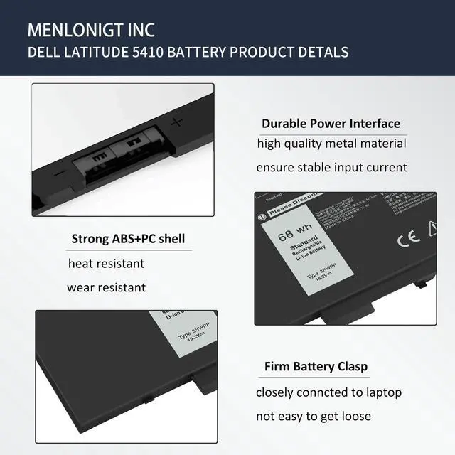 Safety and Reliability: Our 3HWPP battery is assembled with the highest quality components to ensure optimal performance and reliability. Designed to meet the highest industry standards, it is a reliable choice for Dell laptops. Built-in overcharge and overdischarge circuit protection, overheat and short-circuit protection provide a safe and reliable power source for your Dell laptop. You can rest assured knowing it is a 100% brand new manufacturer's product. ^^ 6. Hassle-Free Warranty We offer a 60-day full refund policy for a hassle-free shopping experience. If you encounter any problems within 60 days, our friendly support team is available 24/7 via email. Simply click "Ask a Question" to contact us for assistance. I guarantee you'll be pleasantly surprised. ^^ 7. The MENLONIGT DELL 3HWPP REPLACEMENT FOR DELL 5401 5410 5501 5510 5511 BATTERY that you have purchased here is the newest of its kind The newest, most popular and powerful high efficiency laptop battery 2025 from the USA and will not disappoint you