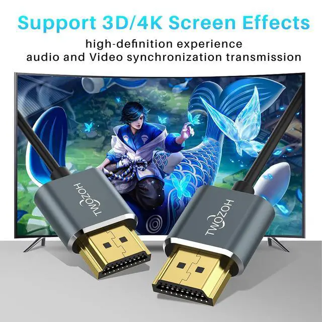 High Speed: Slim HDMI Cord 1FT 4K@60Hz HDMI Cable support resolution up to 3840 x 2160 3D HDR, and 32 audio path and 18Gbps band with high level of EMI resistance, providing vivid visual experience.