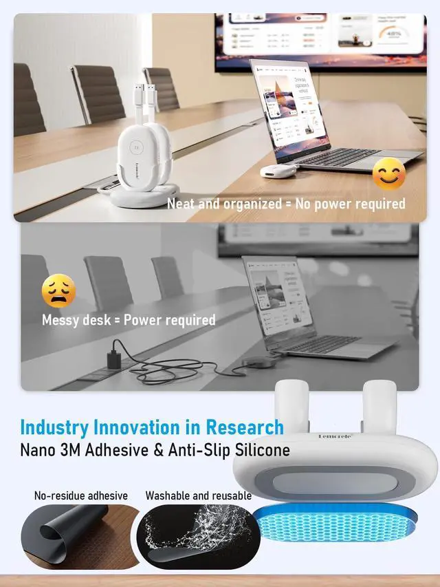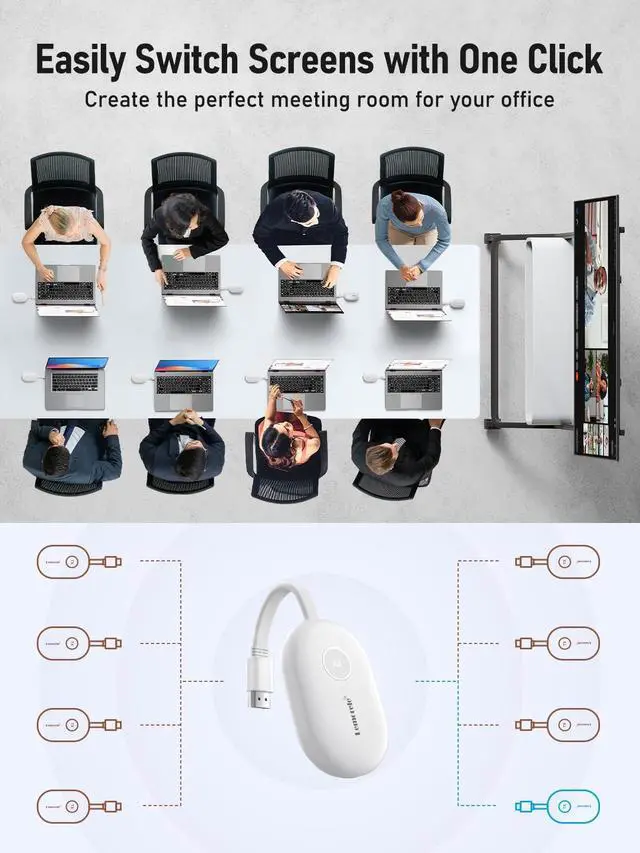 One-Touch Switching: No drivers, apps, or network setup needed. Simply connect the RX to the display and plug the TX into your laptop's HDMI port. Mirror your screen in under 3 seconds and switch seamlessly between presenters with a single button press on any TX ^^ Long-Lasting Portable TX with Organized