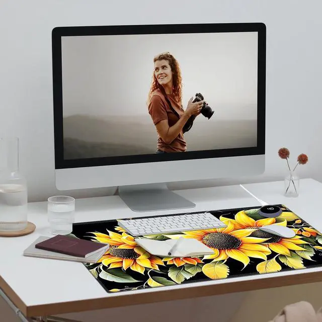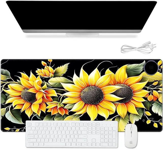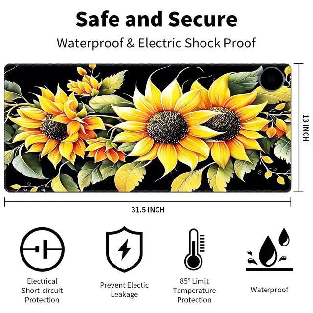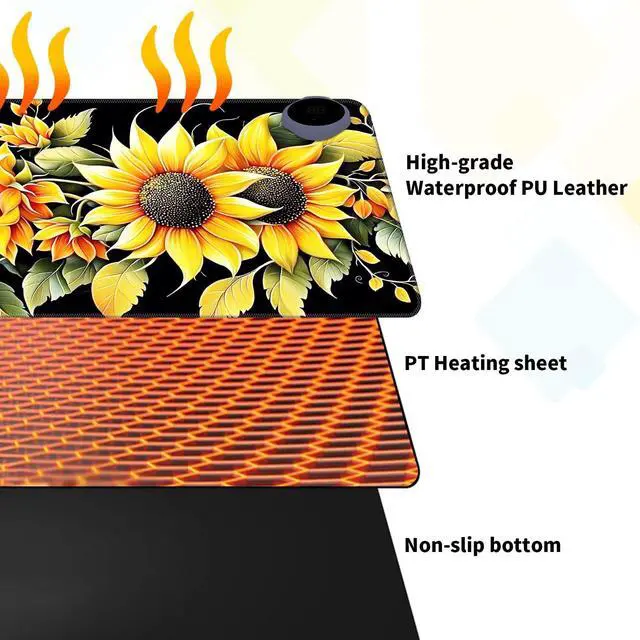 Warm Desk Pad, Warm Mouse Pad Gaming, Office Desk Mat,with 3 Levels Heated & 3 Hours Auto Shut - 31.5 x 13 inch PU Leather Laptop Keyboard Mat for Home Office Hand Warmer,Beautiful Sunflower -91