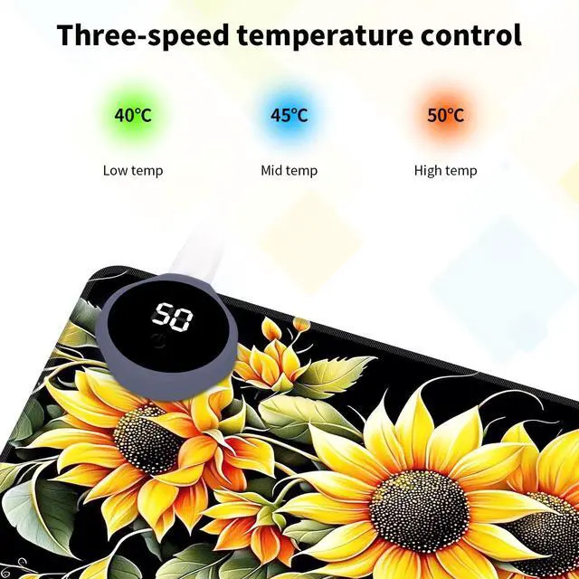 • 3 Control LevelsHeated desk pad for keyboard and mouse. The heated mouse pads have 3 levels of temperature 38, 42, 46 (100.4, 107.6, 114.8).to meet the temperature needs of most people.