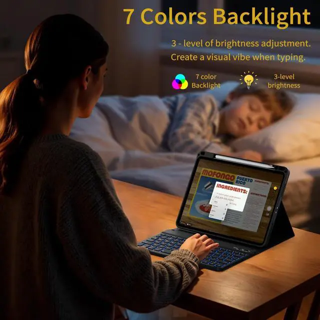 Portable Laptop: Magnetic compact detachable wireless Bluetooth keyboard, with anti-slip design inside, stable adjustment of multiple angles, pencil holder for easy access to pens, easy to install and remove, can be firmly fixed on the protective cover, instantly transformed into a portable laptop, perfect for studying, working, writing, painting, reading or watching videos ^^ 360Protective: The outer shell of this KTGGHG protective case adopts high-quality PU full-cover design, and the inner shell adopts high-quality soft TPU material and has a honeycomb grid design, which is easy to dissipate heat and bring all-round extreme protection to your iPad, The camera, speakers, buttons and other interfaces are designed with perfect cutouts, which are easy to press and you can easily access all the controls and functions of the tablet without removing the protective case. The overall design is thin and light, easy to carry and not heavy ^^