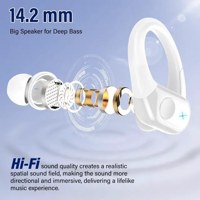 ^^ Designed for Sports: The ergonomic ear hooks, made from soft silicone, ensure a comfortable and secure fit. These wireless headphones stay in place during daily commutes, outdoor activities, and intense workouts. With an IP7 waterproof rating, theyre protected from sweat and rain, making them perfect for sports, running, and travel.