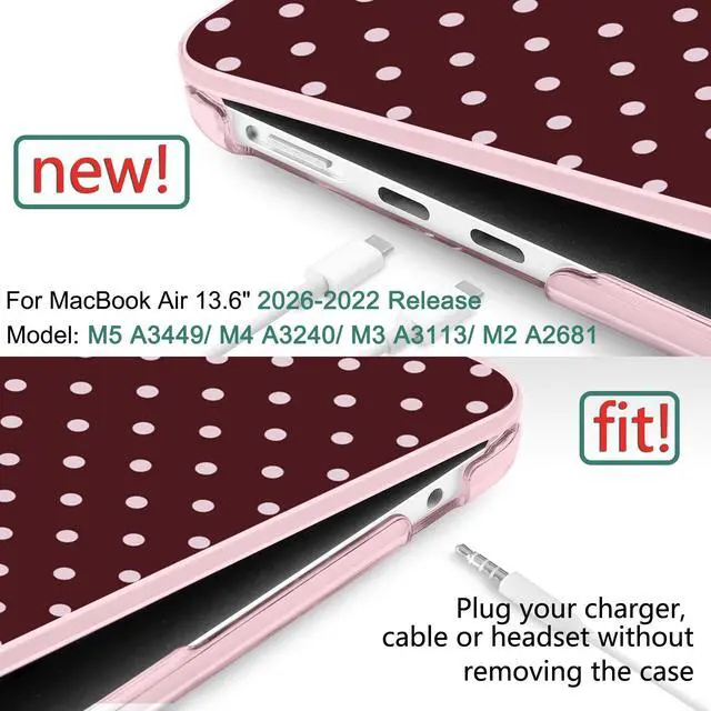 Perfect Fit for MacBook Air 13 Inch ( 13.6 Inch) Designed exclusively for MacBook Air 13.6 inch models with M5/M4/M3/M2 chips (2026 2025 2024 2023 2022). Compatible with models A3449, A3240, A3113, and A2681. Please check the model number Axxxx on the bottom of your MacBook before purchasing. ^^ Stylish Printed Hard Shell Protection Made of durable hard plastic, this slim case protects your MacBook from scratches, scuffs, and fingerprints while showcasing vibrant, fade-resistant printed designs. ^^ Slim, Lightweight & Ventilated Design Ultra-slim snap-on cover adds minimal bulk and weight.