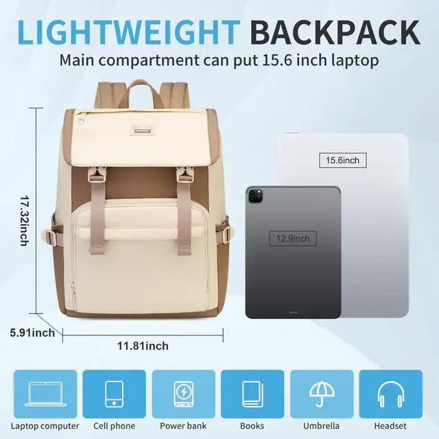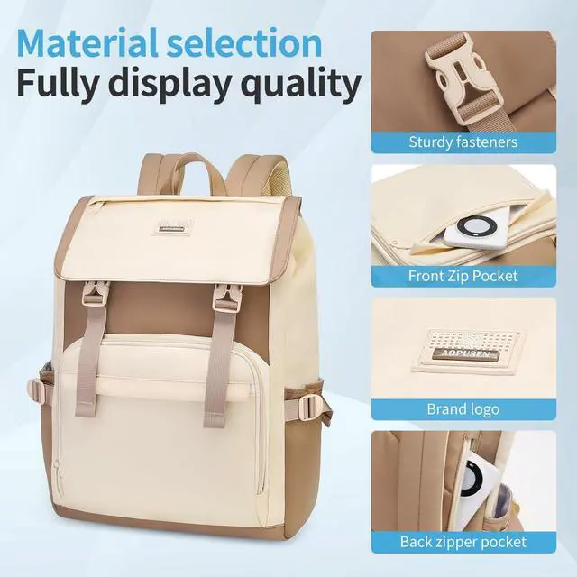 Large Capacity & Multi-CompartmentsFeatures a spacious main compartment with a dedicated 15.6 -inch laptop sleeve, front zip pocket, and side bottle holders, keeping your belongings organized and easy to access. ^^ Lightweight & ComfortableDesigned with breathable shoulder straps and padded back panel, reducing pressure on your shoulders for all-day comfort, perfect for business, work, or travel. ^^ Durable & High QualityMade of water-resistant, wear-resistant fabric, sturdy zippers, and reinforced stitching to ensure long-lasting use and reliable performance. ^^ Fashionable & Versatile DesignElegant beige color block design combines practicality with style, making it an ideal gift for professionals, or casual daily use.