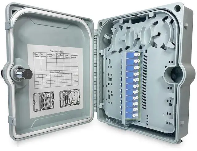 Fiber Optic Wall Mount or Pole Mount Enclosure for Indoor or Outdoor Fiber Optic Terminations and Fusion Splice installations with Couplers. (LC OS2 NO Pigtails)