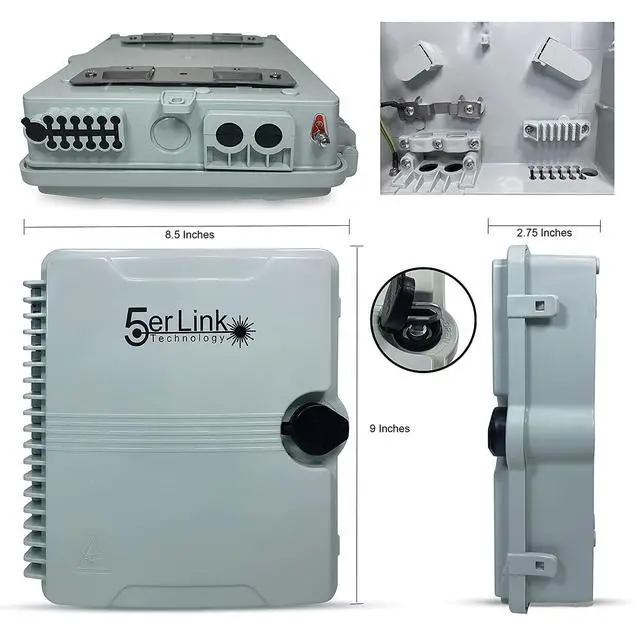5er Link Technology Fiber Optic Wall Mount or Pole Mount Enclosure for Indoor or Outdoor Fiber Optic Terminations and Fusion Splice installations with Couplers.