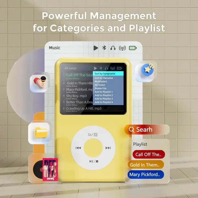 Long battery life - half volume via wired earbuds for 25 hours music playback, 1250 mAh capacity balancing excellent convenice and function. ^^ Portable mp3 player - MP3 has 64 gram( 2.26 oz) equivalent to 8 dollar coins, shap as a pock card. ^^ Formats supported - MP3, OGG, MAV, FLAC, AMR, MID, AAC, APE, etc. Compatible with ROCKBOX system by the way, what an awesome