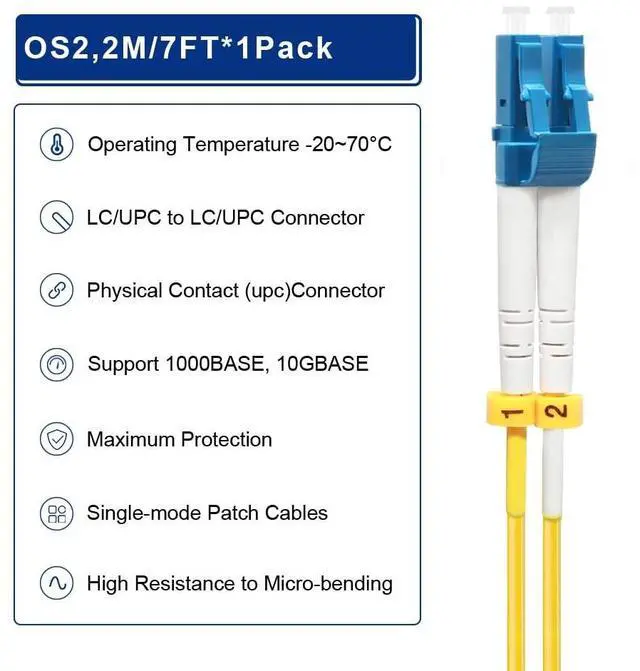 High Rated OS2 9/125m Fiber and Cladding, which is Insensitive to bending, Easy peeling, Easy welding, ensures small optical loss and stable transmission. The core is Japan imports zirconia powder ceramics, which is High Return Loss, Low Insertion Loss, Low Attenuation feautures. ^^ This LC to LC Single-mode Duplex OS2 fiber patch cords operate at -20C to +70C. Compatible with all standard fibre optic equipment and connectors, They are suitable for indoor use. ^^ 16mm Minimum Bend Radius that is 4X more flexible than standard 50 micron fiber cables without introducing any macro-bending loss; Ideal for SAN network cabinets that require 20 or more bends in the cabinet or high density installations with cables crammed into an extremely small footprint.