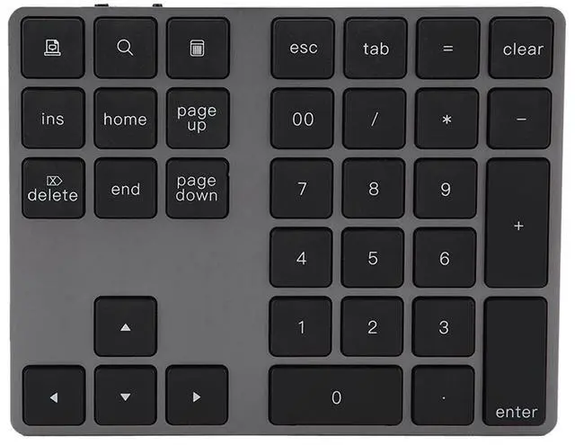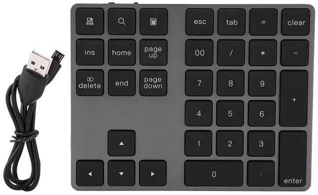 Features: 1. 34-key numeric keypad for computers, laptops. 2. Made of Aluminum Alloy + ABS, durable to use. 3. No matter where you go, you can easily put it in any backpack, bag, or purse. 4. Built-in Soft Pack Lithium Battery 302323-110mAh. 5. Support for, for for Android system.