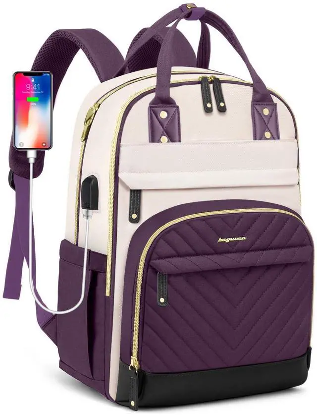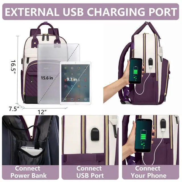 Waterproof teacher backpack fits under the seat also meets airline carry-on requirements. Adjustable shoulder strap with mesh fabric for breath ability, it can distribute the weight of book bag decently on our back, providing you with more comfort during your trip ^^ Work Backpacks with USB Charging Port- The college back pack have an external USB charging port and built-in charging cable which can be easily connected wherever you are. It is convenient and comfortable for you (POWER BANK IS NOT INCLUDED). This casual womens book bags is the best choice for you. ^^ Versatile & Practical Backpack- The causal backpack is equipped with an anti-theft pocket on the back and anti-theft zippers on main compartment which protects your valuable items from thieves.