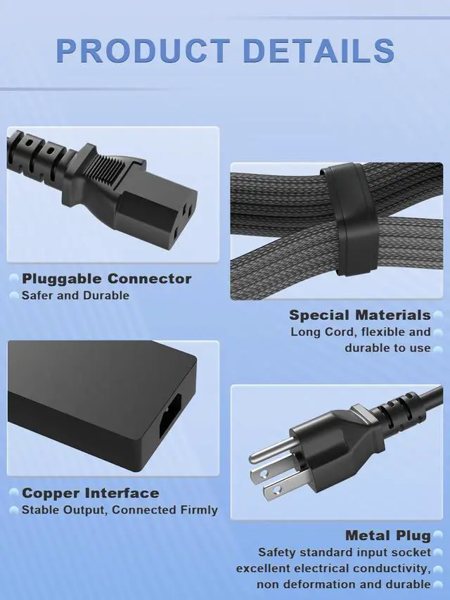 The flame-retardant, high-temperature resistant materials prevent overheating even at 50C during intense use. The intelligent heat management system automatically regulates power based on battery status, keeping your home and family secure while extending your laptops battery life. ^^ [Smart Fast Charging Efficiency]; Experience rapid power delivery that mirrors original performance. This charger can power your device from 0% to 100% in just 0.6 to 1.2 hours (based on standard batteries). The intelligent internal chip detects your devices temperature and battery health to optimize charging speed, ensuring less heat generation and more efficient energy transfer.
