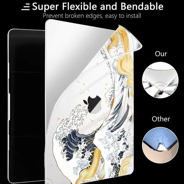 Professional Cutting Technology: The crystal transparent case is made of upgraded PC plastic. Cover is molded according to the original laptop using micro 3D cutting technology. M5 cases fits your MacBook perfectly and effectively prevents scratches and dust from the outside world ^^ Design