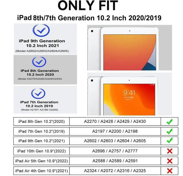 Compatibility: Fits for iPad 9th/ 8th/ 7th Generation 10.2 InchC confirm your model before purchase. Get yours now & protect your iPad in legendary style!