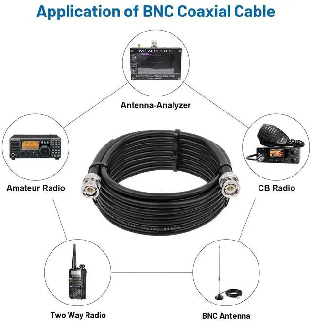 ^^ [Prevent Fall Apart Connector] - Compared with other bnc cable, our heating shrinking tube is up to 2.2 inches and built with inner adhesive. It could support professionally connection between cable and adapters without worrying about connector pull out. ^^ [Applications] - This bnc male to bnc male cable is support to transfer both RF and video signals. It is an ideal for Two Way Radio, Ham Radio, Hf/Vhf radio, BNC receiver antennas, Antenna Extension, Radio Scanner, Amateur Radio and so on.