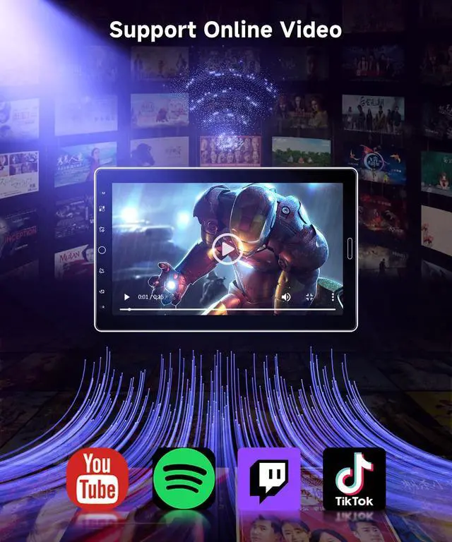 AUX audio input: Support connect your devices and enjoy your favorite music, videos, and photos. You can also charge your devices using the ports while driving. AUX audio input interface supports external MP3, mobile phones, music players, etc.