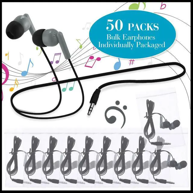 • Large Quantity for Use: you will receive 100 pieces ear wired headphones, each ear headphone is wrapped individually in bag, such a large quantity is suitable for use as class set of headphones for students to meet demand