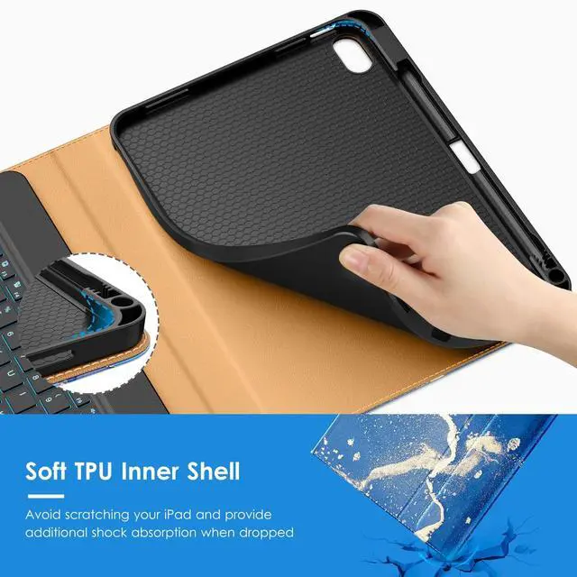 Number: A2757/A2777/A2696), Not compatible with any other iPad devices. Please check back bottom of your iPad to find the model number. ^^ [FASHION AND PROTECTION] - Offers the difference by full protection Design, leather back provides strong support, anti-fingerprint and anti-scratch. Soft TPU frame protects your iPad from drops and shocks. ^^ [LAPTOP-LIKE TYPING]The keys of the keyboard are scissor structure, square chocolate keycap ergonomic design. Large, well-spaced keyboard containing a full row of iPadOS shortcut keys lets you type comfortably with speed and accuracy. ^^ [Multiple Function] - This iPad Keyboard case is Built-in Pencil Holder, that supports Touch ID, Camera Protection, and Two stand Angle. Comes with a front ID card pocket to store notes, cash and cards like a wallet. ^^ [Reliable Supplier] - We Offers Lifetime Free Replacement for Your IPad Case. (Needs to be activated within 30 days of purchasing) Your Satisfaction Is Our Top Concern.