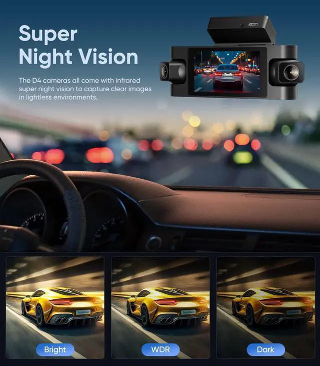 ^^ Powerful Night Vision: Equipped with 8 infrared (IR) lamps, the dash cam offers excellent night vision capabilities. Even in low - light or complete darkness, the IR lamps illuminate the area, allowing the camera to capture clear and detailed footage. You can drive with confidence at any time of the day or night. ^^ It is outfitted with a 3 - inch high - definition display, facilitating seamless real - time playback of recorded videos. This feature ensures users can instantly review crucial footage, providing reliable evidence and peace of mind during every journey. ^^ G -