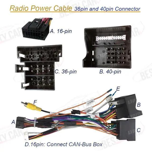 This 16pin power wiring harness is Compatible for Skoda Rapid; For Skoda Yeti; For Skoda Rapid Spaceback; For VW Lavida 2012-2015; For VW Santana 2012-2017; For VW Polo; For VW Bora 2012-2016; For VW Jetta 2012-2017; For VW Sagitar 2012-015; For VW Cross Lavida/Gran Lavida; For VW Beetle; For VW Tiguan 2013; For VW Variant 2016-2021; For VW C-Trek 2016-2021; For VW Golf 6; For VW Magotan 2012-2016; For VW Passat /CC; For VW Sagitar 2012-2015; For VW Tiguan 2012-2016; For Skoda Octavia 2009-2014