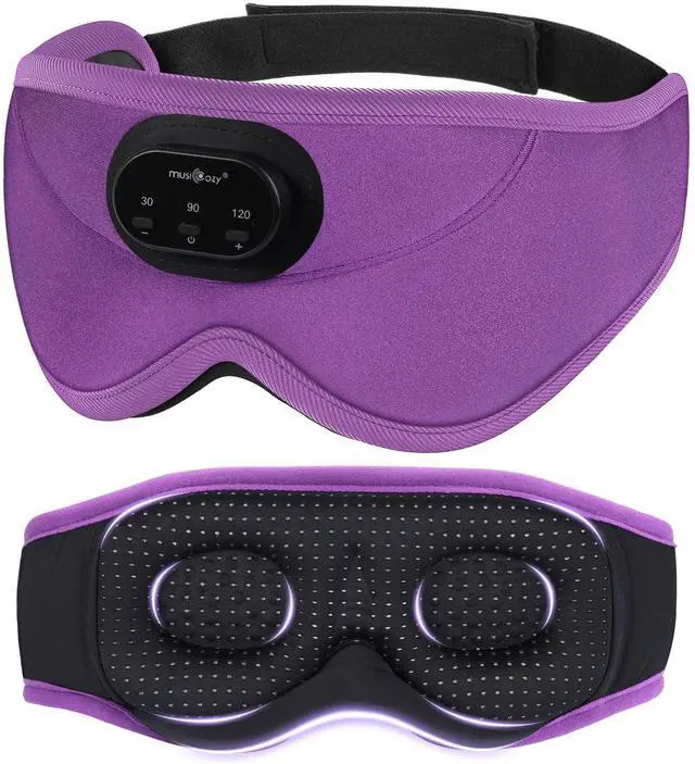CUSTOMIZABLE TIMER FUNCTION FOR OPTIMAL SLEEP: The MUSICOZY 3D Bluetooth sleep mask features a built-in timer with three settings (30 mins, 90 mins, 120 mins), allowing you to choose the perfect duration for relaxation or deep sleep. Ideal for use with music, audiobooks, or meditation without worrying about playing all night. ^^ HD STEREO SOUND WITH BLUETOOTH 5.4: Equipped with the latest Bluetooth 5.4 technology, this sleep mask with Bluetooth headphones ensures faster pairing, stable connections, and lower energy consumption. Enjoy deep bass and crystal-clear treble with these sleep headphones wireless Bluetooth, perfect for sleeping, travel, or meditation. ^^ 14 HOURS PLAYTIME WITH TYPE-C FAST CHARGING: Built-in 200mAh rechargeable battery fully charges in just 2 hours via the convenient Type-C port, providing up to 14 hours of continuous use. Perfect for all-night listening without low-battery alerts interrupting your rest. ^^ 3D