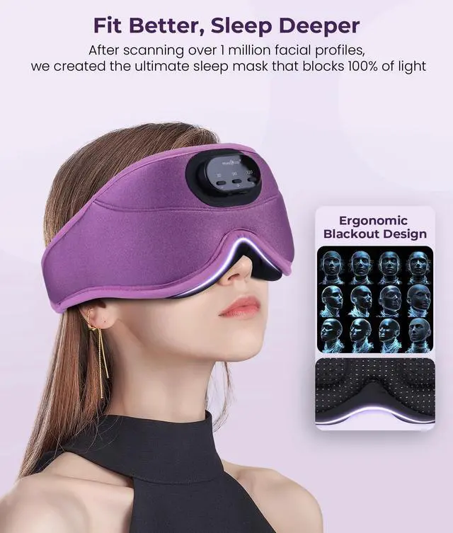 ERGONOMIC DESIGN FOR SIDE SLEEPERS: This Bluetooth eye mask for sleeping features a 3D contoured design that offers zero pressure on the eyes, total light blocking, and a soft, breathable lining for maximum comfort. Ideal for side sleepers, travelers, or anyone sensitive to light. ^^ PERFECT GIFT FOR RELAXATION AND COMFORT: The MUSICOZY sleep mask with Bluetooth headphones is a unique and thoughtful gift for men, women, and teens. Great for birthdays, holidays, or special occasions, and suitable for home, travel, yoga, and meditation.