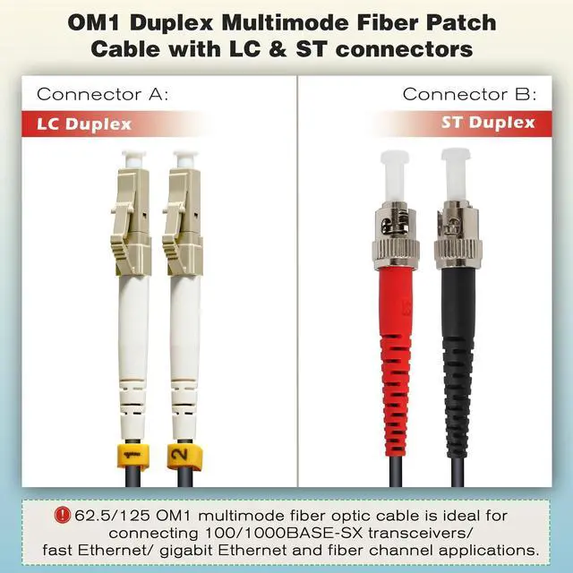 • 5.0mm outer diameter OM1 (62.5/125um) multi mode fiber optic cable with LC/ST ends