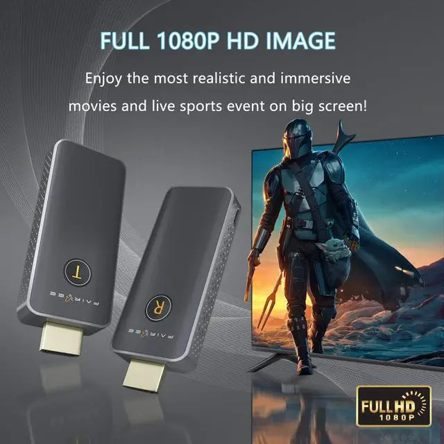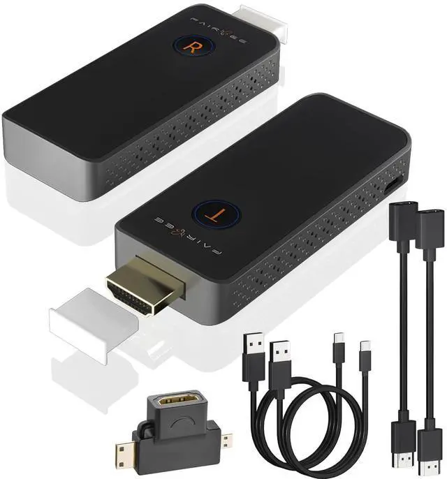 Plug & Play, No Hassle SetupThe HDMI Wireless No apps, Wi-Fi, or Bluetooth needed. Instantly mirror or extend your screen from laptops, cameras, or set-top boxes to HDTVs, projectors, and monitorsperfect for work, movies, and presentations. ^^ 100ft/30m Stable Wireless Transmission Dual-band 2.4G /5G technology ensures a strong, The transmitter and receiver have a range of up to 100 feet. Weighs only 0.1 lbs, flexible placement, very convenient.