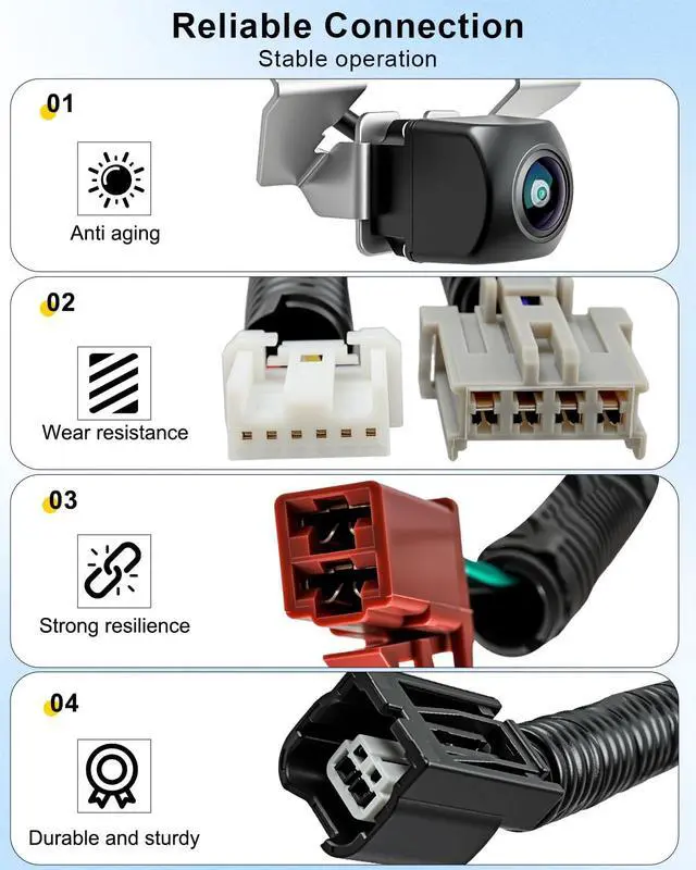 Reliable Connection: Stable connection between the rearview camera and other related components such as the vehicle power supply, safe and reliable, ensuring long-term stable operation of the system and reducing short circuits or other electrical faults ^^
