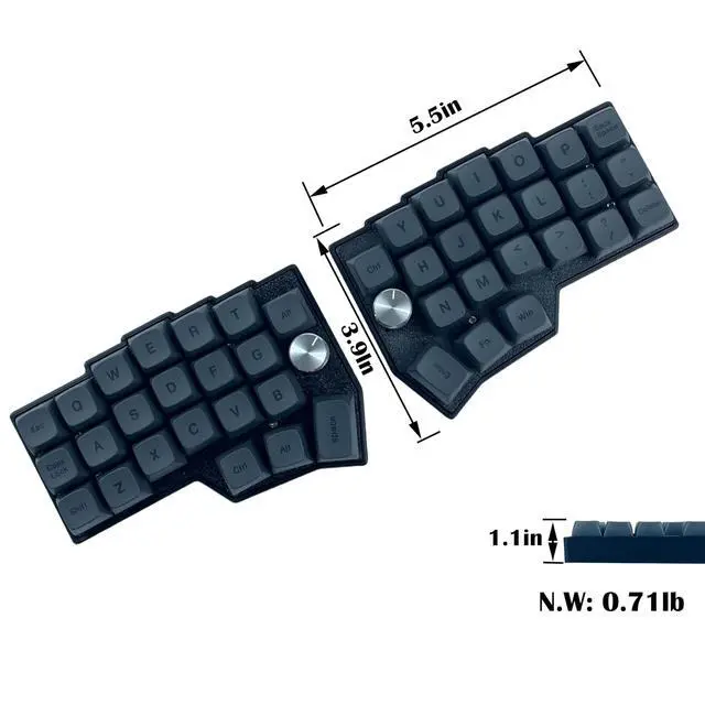 The integrated rotary knobs add convenient analog control for volume, scrolling, or any function you assign. Durable PBT XDA profile keycaps resist wear and provide a comfortable, uniform typing surface that maintains its premium feel over time. RGB backlighting adds visual flair and improves visibility in low-light conditions. Whether you're coding, gaming, or tackling daily tasks, this wired split keyboard combines ergonomic comfort with extensive customization options to enhance your productivity and typing enjoyment.
