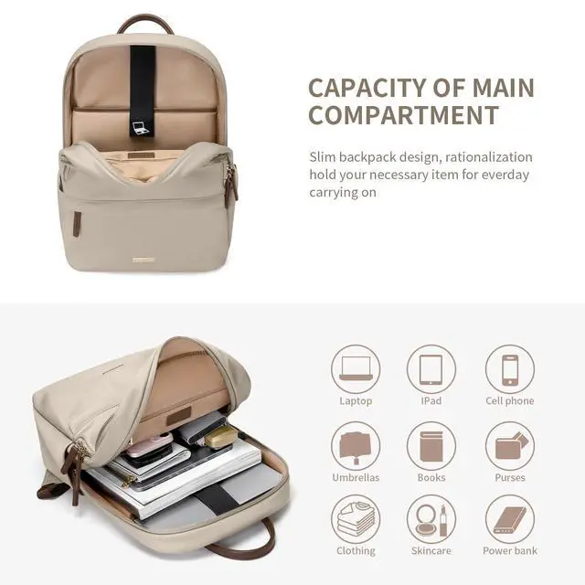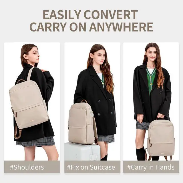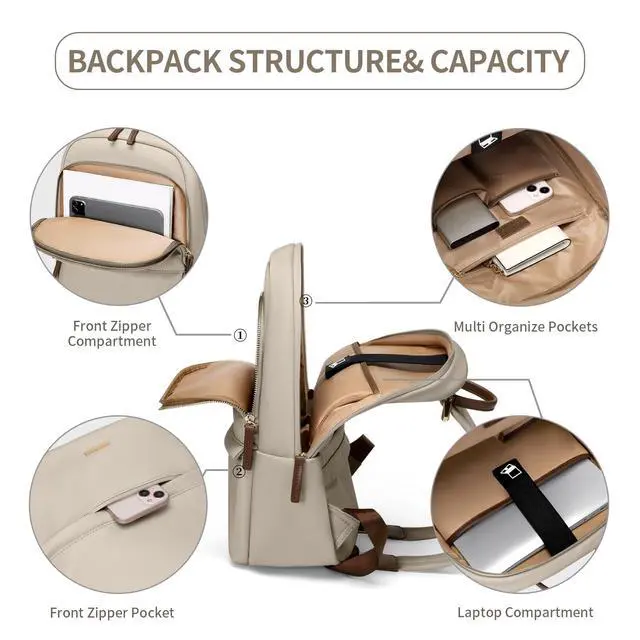 Size & Color- GOLF SUPAGS women's laptop backpack adopt stylish designs and different color choices(Pinkish Gray, Apricot, Black).