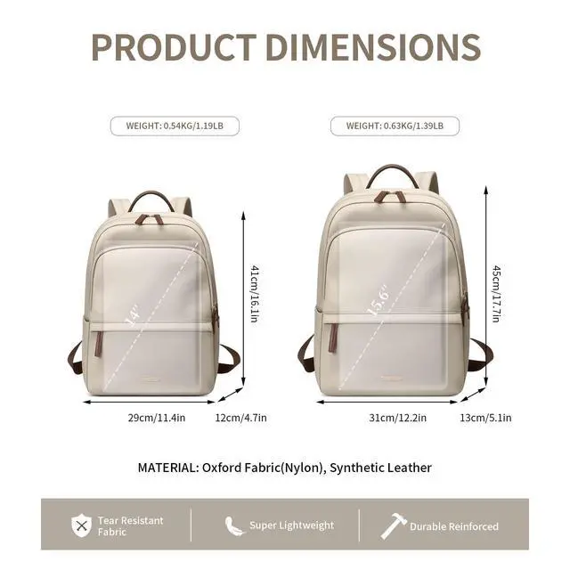Size: 15" x 11" x 4.7" /38 x 28 x 12cm. ^^ Large Capacity - A backpack is not too bulky but roomy for everything you need. The main compartment with laptop sleeve fits up to 14'' laptop. The main compartment is also roomy for Pad, books, magazines and clothes. Outer with a zipper front pocket, a backside zipper hidden pocket and 2 side pockets. ^^ Water Resistant Fabric - GOLF SUPAGS women backpack are made of high quality water resistant nylon/faux leather (but not completely waterproof), durable and reinforced. Adjustable dual shoulder straps with high quality metal buckle provide an optimum comfortable when carrying it. ^^ Perfect Present - It's a great daily laptop backpack for women, which will be an excellent present for yourself, your family, friends, and so on. Our backpack suitable for travel, work, leisure, and back to college. It is a perfect present for an anniversary, birthday, and other important dates. ^^ After-Sales Services - Customer satisfaction is our priority. If there is any use problem with the product, always feel free to contact us.