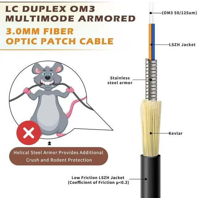 Duplex OM3 Multimode Armored Fiber Optic Patch Cable: Use for Indoor and outdoor applications ^^ OM3 Fiber LC with