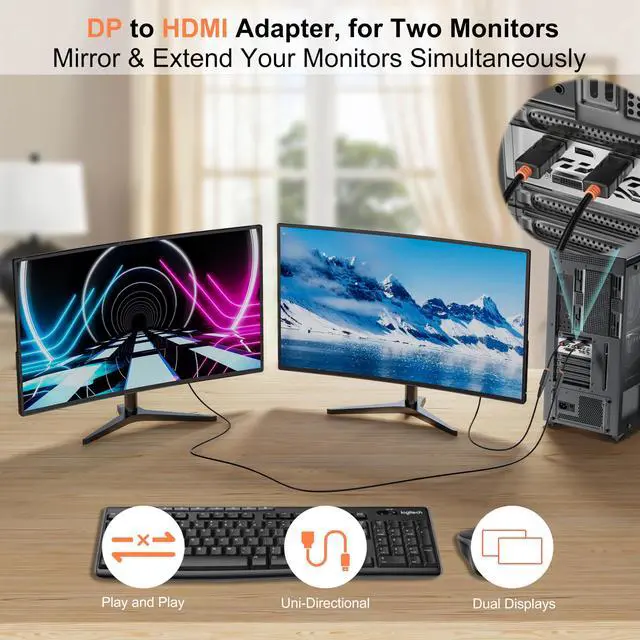 New DesignRyzzRooa Displayport to HDMI adapter with Dynamic and fashionable two-tone black and orange design. Could make your work life more colour, more comfortable. The small compact design is perfect for travelling or making business presentation, easier to connect ^^ Universal CompatibilityDisplayport to HDMI converter is compatible with DP-Equipped (including DP, DisplayPort++, DP++) Computer, PC, Graphic Card, Notebook. It is a Uni-directional adapter, it only can transmit video from an Displayport PC to HDMI monitor ^^ 4K@30Hz Resolution Display Port to HDMI adapter supports resolution up to 4K@30Hz, it can transmits both audio and video from computer with DisplayPort to monitor, HDTV, projector with HDMI ^^ Reliable StabilityThe DP to HDMI connector with latch design prevents accidental disconnection and provide the secure signal transmission.