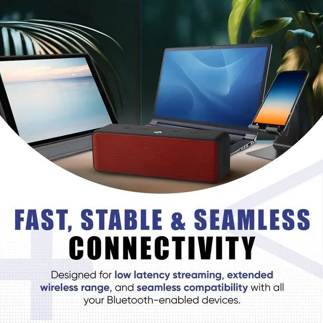 Make Every Room Sound Better - Feel the energy with our 50W wireless bluetooth speakers as dual 25W drivers fill your home with deep bass and crisp highs. Turn everyday moments into rich sound experiences perfect for relaxing, recharging, or entertaining in style ^^ Sound That Defies Spills - Our wireless speaker features IPX6 water resistance so you can enjoy powerful, clear sound without worrying about spills or splashes. Perfect for keeping the music alive whether youre cooking, relaxing, or entertaining at home ^^ Music That Lasts All Day - Enjoy 12 hours of uninterrupted music with our bluetooth speakers that keep your playlists alive all day long.