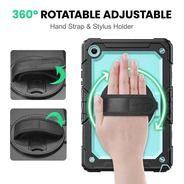 Stand and Handle: The case comes with a stable stand and 360 degree rotating handle, making it easy to use tablet, for anything from video calls to watching movies; provide full protection for your tablet screen with a built-in screen protector. ^^ Convenient and