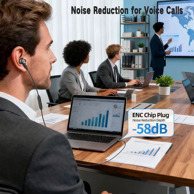 Elevate your audio experience with these premium wired in-ear headphonesequipped with ENC Call (Environmental Noise Cancellation) and 80% passive noise isolation to block distractions during calls and music. Featuring dual-driver Hi-Fi technology, they deliver rich, immersive sound with deep, punchy bass that brings your favorite tracks to life. The USB-C plug ensures universal compatibility with smartphones, tablets, and laptops, while built-in volume control lets you adjust audio effortlessly on the go. Perfect for commuters, students, and music lovers, these durable wired earbuds combine professional sound quality, crystal-clear call performance, and convenient operationall in a compact, comfortable design.