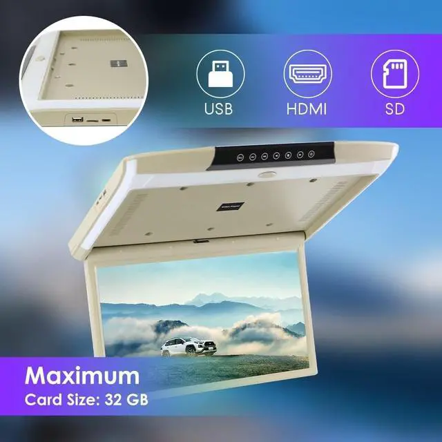 Audio Transmission: No external speakers or headphones required, the monitor will fill your vehicle with pleasant stereo sound whether you are playing music or movies on it, direct and convenient. ^^ Please make sure you have enough sapce for the installation of the Roof Monitor before your purchase! ^^ 1