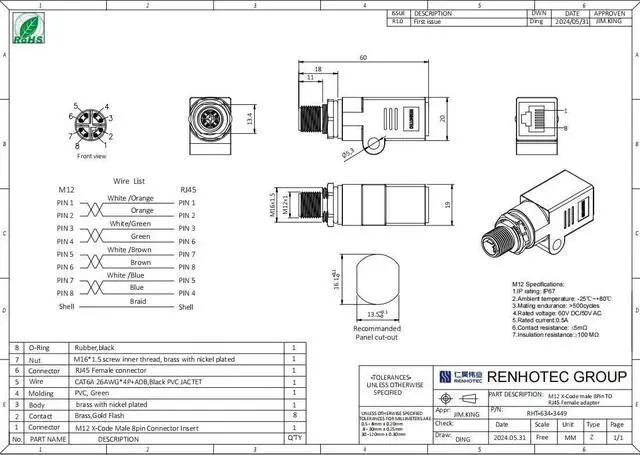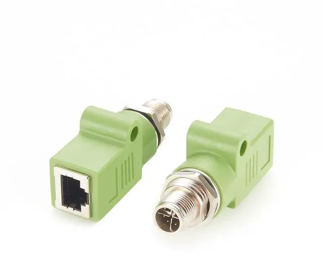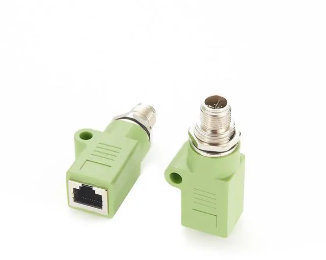 ^^ Green Durable Design: The adapter comes in a green color, built with robust materials to withstand tough industrial conditions, ensuring long-lasting performance in high-speed networking environments. Designed with IP67 waterproof capabilities, this adapter ensures reliable performance in wet or harsh industrial environments, safeguarding against moisture and dust. ^^ X Code 8 Pin to RJ45 Connectors can be connected to devices including but not limited to sensors, actuators, motors, industrial cameras, code scanners, industrial Ethernet equipment, etc.
