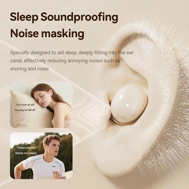 2-IN-1 DUAL SLEEP EARBUDS SET - Includes two different styles of ultra-soft, skin-tone earbuds in one charging case. Experience both low-profile and in-ear designs tailored for side sleepers, small ears, and all-night comfort. ^^ INVISIBLE & DISCREET DESIGN Ultra-thin, micro earbuds sit flush in your ear for undetectable wear. Perfect for sleeping, working, or gym use without drawing attention. ^^ NOISE-REDUCING & CLEAR SOUND Our soft ear tips form a gentle seal to reduce ambient noise for better sleep, while delivering clear audio for meditation, podcasts, or calls.