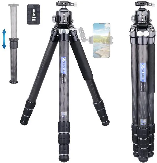 ^^ Wide Compatibility: Removable ball head, The ball head can be used with a tripod, monopod, camera slider, for installing DSLR cameras, DV, mobile phones, camcorders, and telescopes. 1/4 " screw quick shoe plate screw and a 3/8 " thread tripod mount screw. Quick release plate compatible with Acra RRs, etc. Tripod 3/8 top screw can connect with most of the Tripod ball head, fluid head, gear head, slider, etc. Lightweight and portable, it can be used conveniently indoors and outdoors to meet your photographic needs. ^^ What you get&100% Customer satisfaction guaranteedPACKING LIST1*Carbon fiber tripod1*Low profile tripod head1*Spare QR plate1*External center column1* Stainless steel spike+ Allen key we promise 12 months After sales service from the date of purchase. If you have any problems within the quality guarantee period, we will refund or resend. we are always ready to hear your voice (reply within 24hrs).
