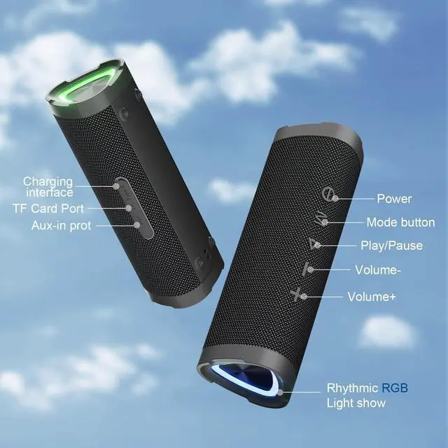 Vanzon V40 Portable Bluetooth Speaker,24H Playtime BT5.0 Wireless Bluetooth Speaker with 24W HD Loud Stereo Sound, IPX7 Waterproof, LED Lights, for Outdoor, Home, Party