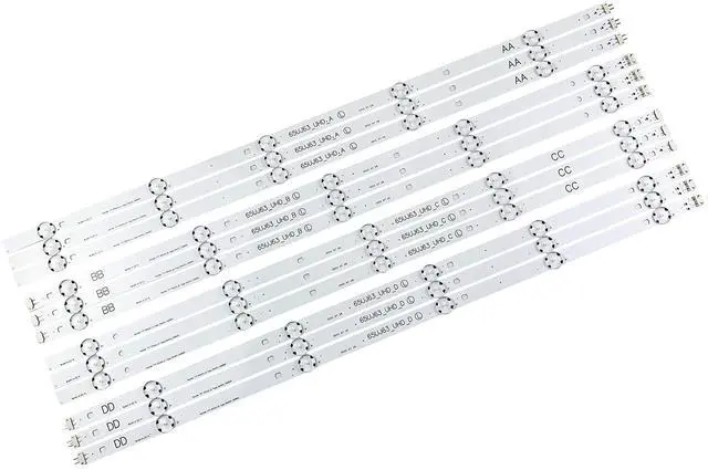 Product informationSize (Length): 52.36 in. (A+B/C+D). There are 12 pieces (3A+3B+3C+3D) per set. The voltage of each LED bead is 3V. Each LED strip has 10 beads(A+B/C+D). Double-sided adhesive paper on the back. ^^ Purchase informationmatch the strips shown in the photo to the originals in your TV before ordering. If you are not sure if it is compatible, you can turn on the inside of the TV, Compare it to my product picture. Thank you very much. ^^ AFTER-SALE SERVICEOur shop provides 180-day after-sales service guarantee. If you have any questions, please do not hesitate to contact our customer service, we always reply you within 24 hours to solve your worries. Our shop mainly sells TV LED Backlight strip. For more product, you can browse our shop homepage.