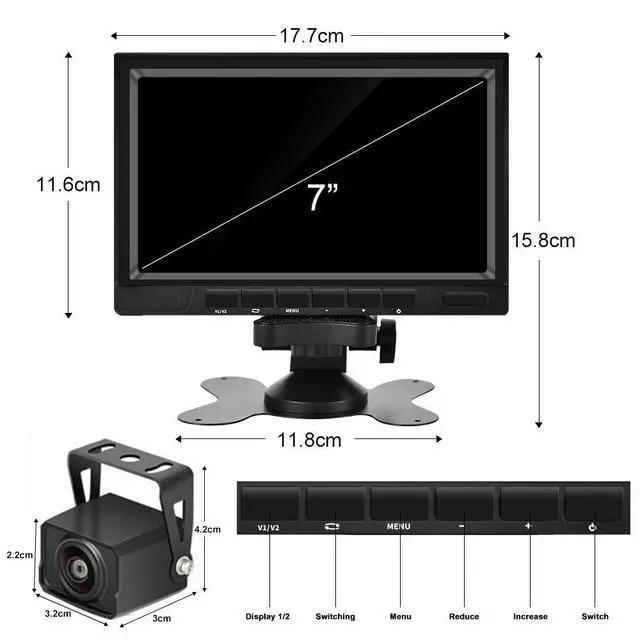 AHD 1080P ImageIntroduce AHD 1080P Technology. Truck backup camera has 7" super large AHD 1080P screen. Digital High definition Image Processor would offer Vivid picture with true color help us drive the car safely. Stable wired signal, no delays or signal drops ^^ Car Monitor DVRGreat Recording Function, rear view camera with monitor supports record 2 channels camera at the same time and loop recording. Saving the video automatically to 256GB maximum SD card (Not Included). 7 inch LCD display monitor is directly attached to flat surface dashboard with provided adhesive foam and bracket ^^ Two Upgraded Backup CameraRV backup camera is made of metal material, its service life and durability are long.