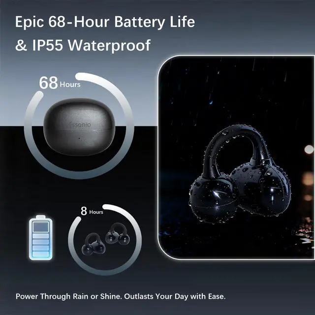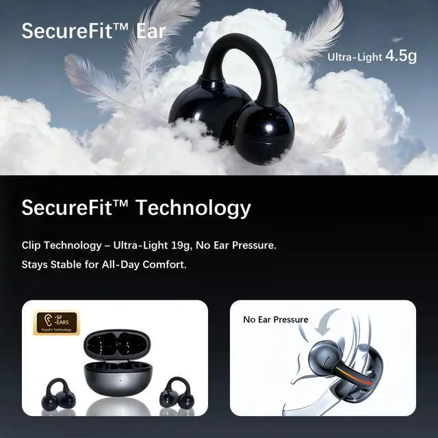 PATENTED ESSONIO+ AUDIO EXCELLENCE - Unleash studio-grade HiFi with Essonio+ patented enhancement and SDT Voice ConvergenceBerlin-tuned for breathtaking clarity, depth, and bass that outshines traditional high-fidelity. APP-customizable sound profiles deliver personalized immersion for music, calls, or podcasts, transforming every moment into a live performance masterpiece. ^^ ULTRA-COMFORT CLIP-ON DESIGN - Italian-engineered lightweight silhouette (28g) with liquid silicone and 20, 000-bend flexibility hugs ears effortlesslyno pressure, no fatigue. Open-ear breathability keeps you aware and stylish during all-day office sessions or urban adventures, redefining premium wearability. ^^ AI-POWERED CRYSTAL CALLS - ENC AI noise cancellation with quad-mic precision isolates your voice in chaostraffic, wind, or crowds vanish.