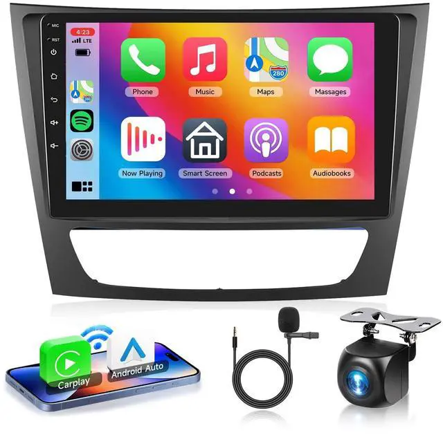 Rear Camera Input/SWC: Carplay radio for Mercedes Benz E200 includes a rear camera input for better visibility when reversing or parking. Steering wheel control keeps your hands on the wheel and eyes on the road. Easily manage volume, calls, and tracks safely while driving ^^